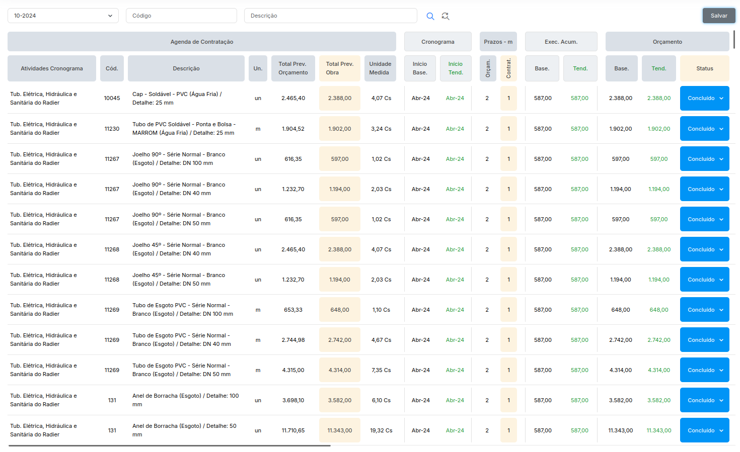 É uma poderosa ferramenta que indica a data prevista para todos os insumos do projeto e acompanha a evolução dos mesmos para a fase do orçamento, fase da contratação e a fase do fornecimento dos insumos no canteiro de obras, evitando assim atrasos indesejados e permitindo a execução das respectivas atividades conforme previsto em cronograma.