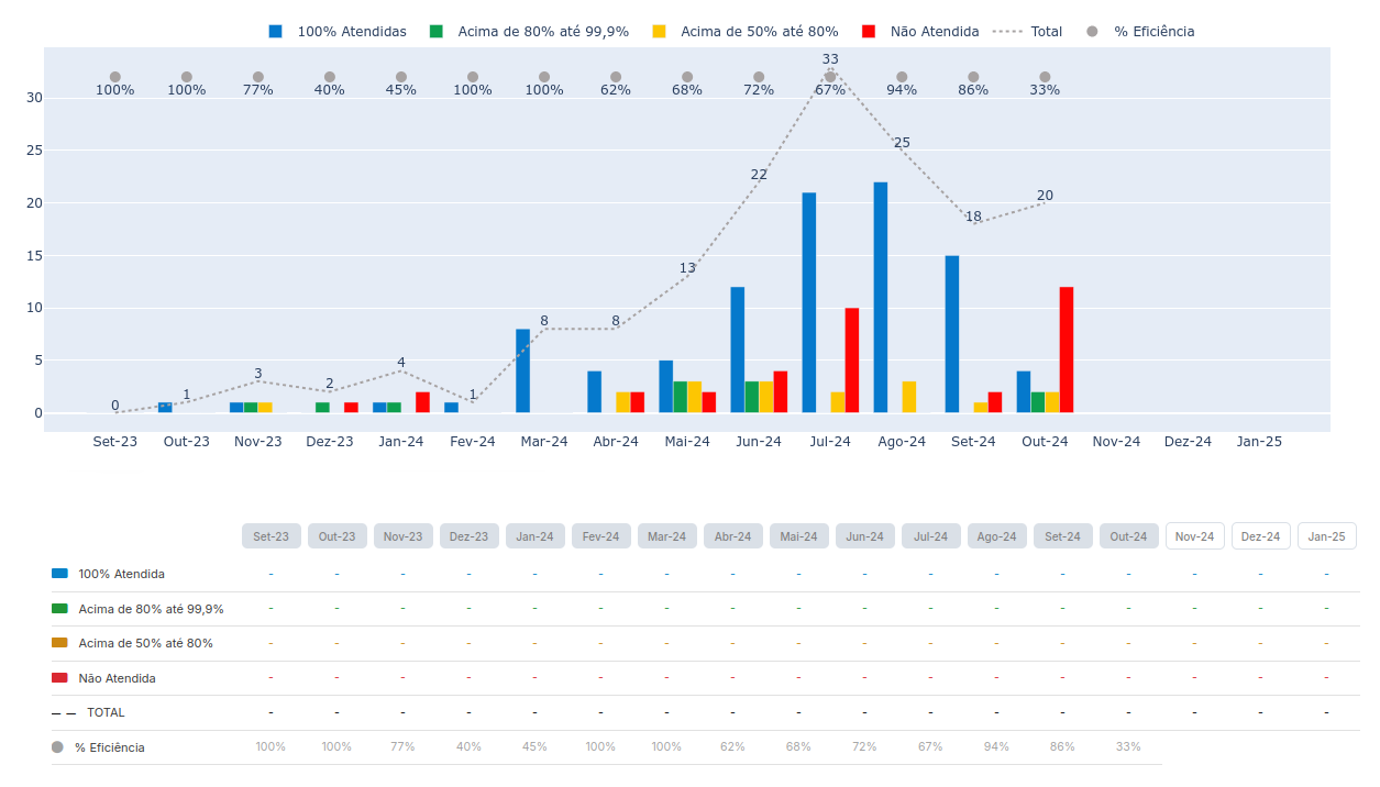 Gráfico demonstrando de forma visual e rápida, o êxito das atividades que geraram plano de ação, devido a desvios do cronograma inicial
