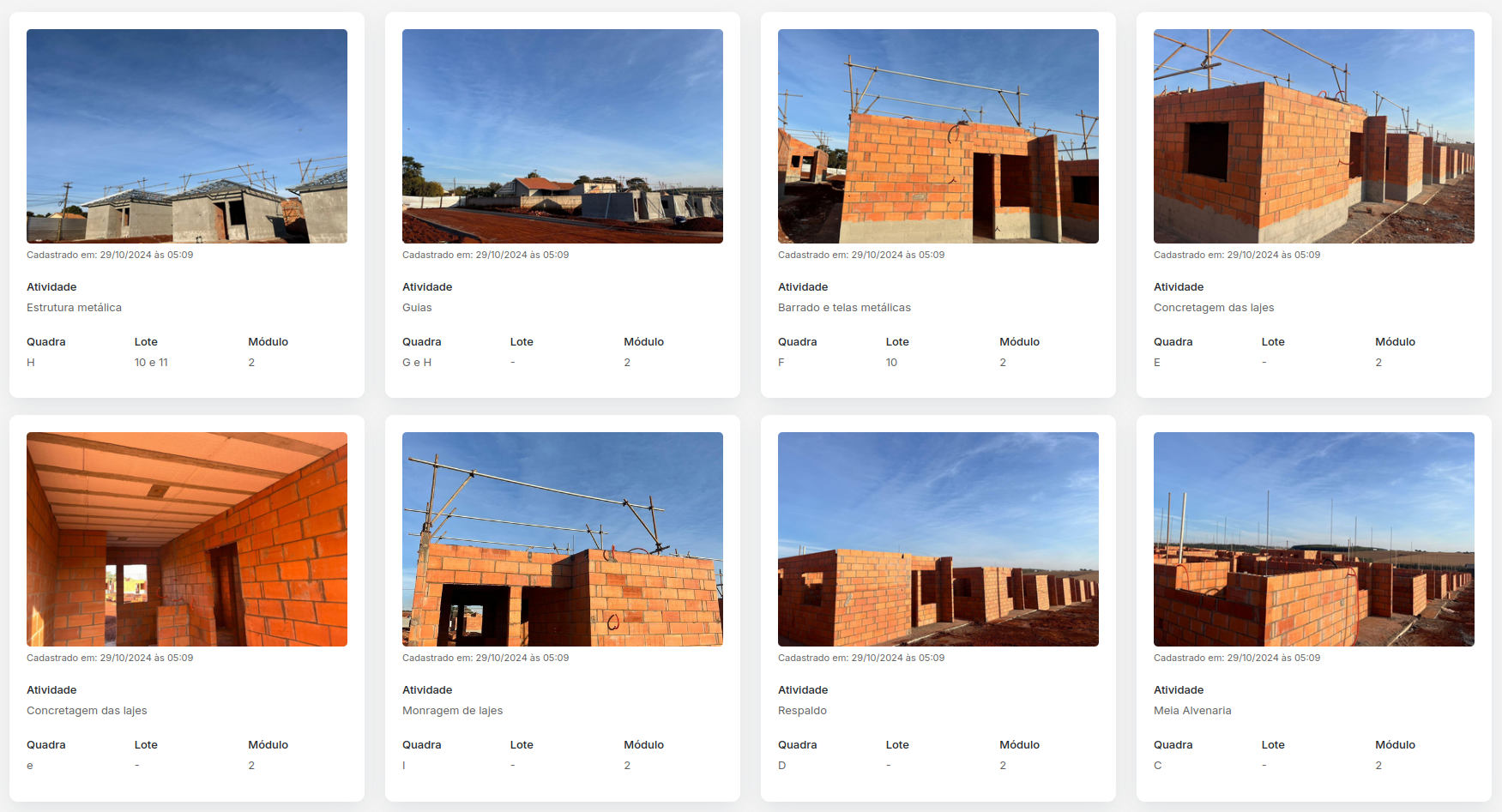 Relatório para inserção de imagens, demonstrando mensalmente a evolução da obra.