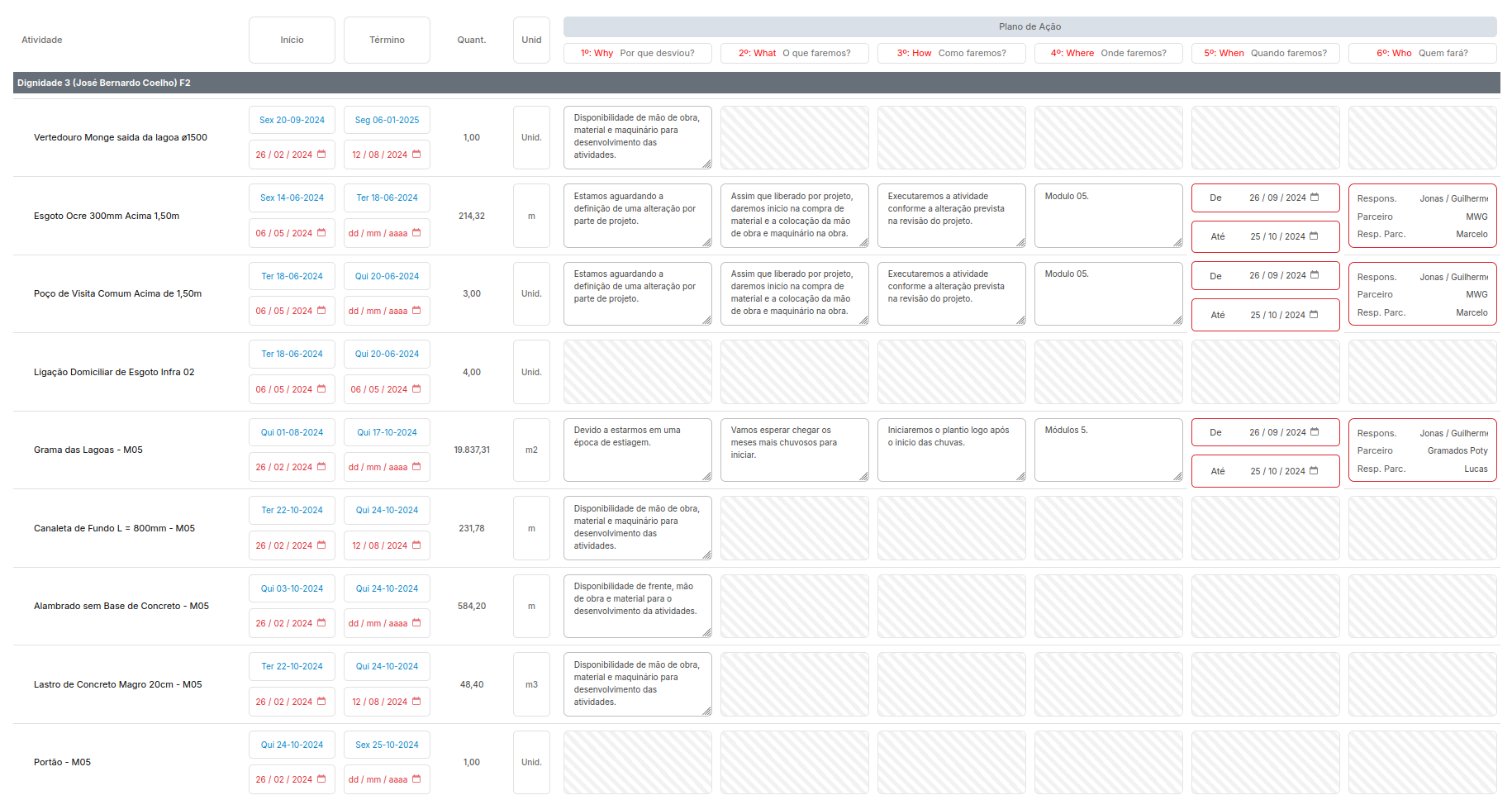 Como complemento do controle de quantidades, para todos os desvios relevantes (acima de 10%), cria-se a necessidade de explicações objetivas, baseadas no método 5W2H: